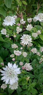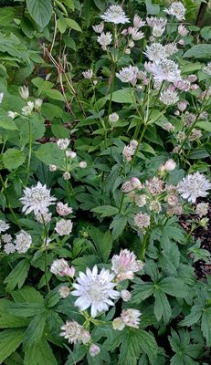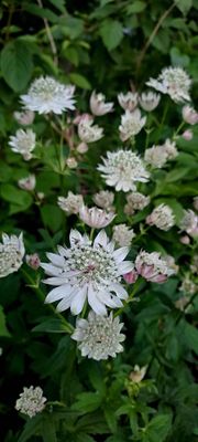 Umbels of tiny pincushion flowers surrounded by a papery bract. An excellent cut flower, attractive to bees. This long-flowering, hardy perennial grows to 60cm height.
