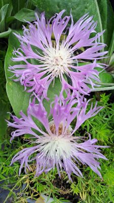 Perennial cornflower, 50cm high with pretty sculptured flowers that attract butterflies and bees. Good ground cover in cottage garden borders and rockeries or in containers.
