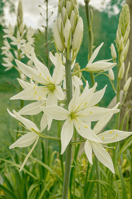 Camassia leichtlinii 'Alba' is a tall, elegant bulbous perennial that sends up starry white flower spikes in mid to late spring, providing a fresh vertical accent just as many spring bulbs are fading. The pure white flowers open gradually up the stem, giving a long flowering window and making it a lovely bridge between spring and early summer in perennial borders and wildflower-style plantings