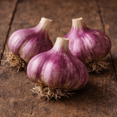 A robust kitchen garlic suited to roasting, sautéing, and fresh use where a full garlic flavour is desired. Scapes can be harvested and used like green garlic or blended into pesto.